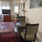 Couples will find this second floor room both roomy and cozy. This room features a King size bed, tub/shower, and a private porch looking out from the shady back of our Victorian home. Cable TV A/C ,hair dryer, coffee maker, mini fridge, wireless broadband,one paking place per room and breakfast included. Maximum occupancy 2.